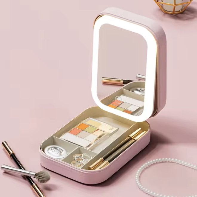 Espejo LED integrado para una iluminación perfecta en cualquier lugar. Ideal para retoques rápidos y maquillaje preciso, donde quiera que estés.